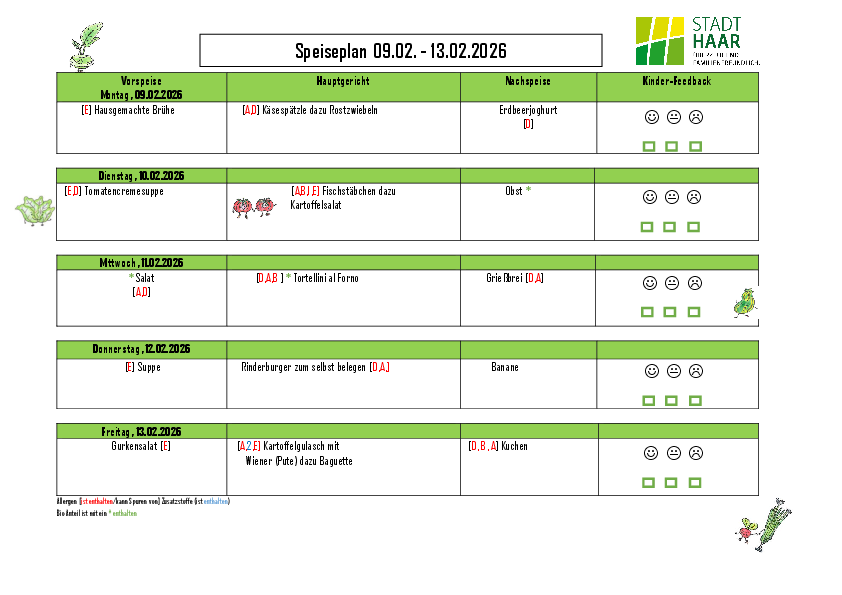 Schulverpflegung / Speiseplan